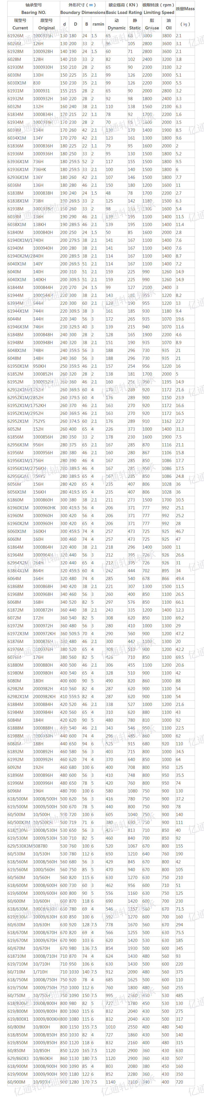 深溝球軸承是與軋機用四列圓柱滾子軸承配套的主要產(chǎn)品之一,主要用于軋輥軸向定位和導向。該類軸承為不可分離型軸承,結構簡單,使用方便,極限轉速高,該類產(chǎn)品單獨使用時主要用于承受徑向負荷,也可以承受一定的軸向負荷,當軸承徑向游隙加大時,具有角接觸球軸承的功能,可承受較大的軸向負荷。在轉速較高不宜采用推力球軸承的情況下可用該類軸承承受純軸向負荷。