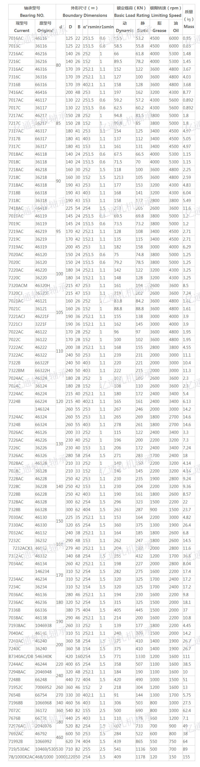 角接觸球軸承極限轉速較高,可同時承受徑向負荷和軸向負荷,有可承受純軸向負荷,其承受軸向負荷的能力有其接觸角決定,接觸角越大軸向負荷能力越大,通常不超過40°,屬于向心推力型角接觸球軸承。該類軸承在軋機軋輥軸向定位上應用廣泛。